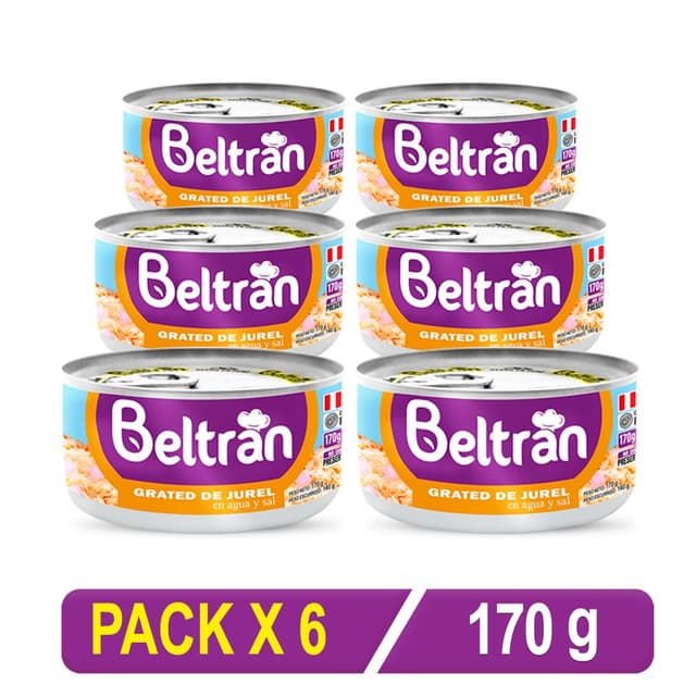Grated De Sardina Peruana Beltrán En Agua Y Sal 1/2 Lb 170 Gr. Caja X 12 Uni