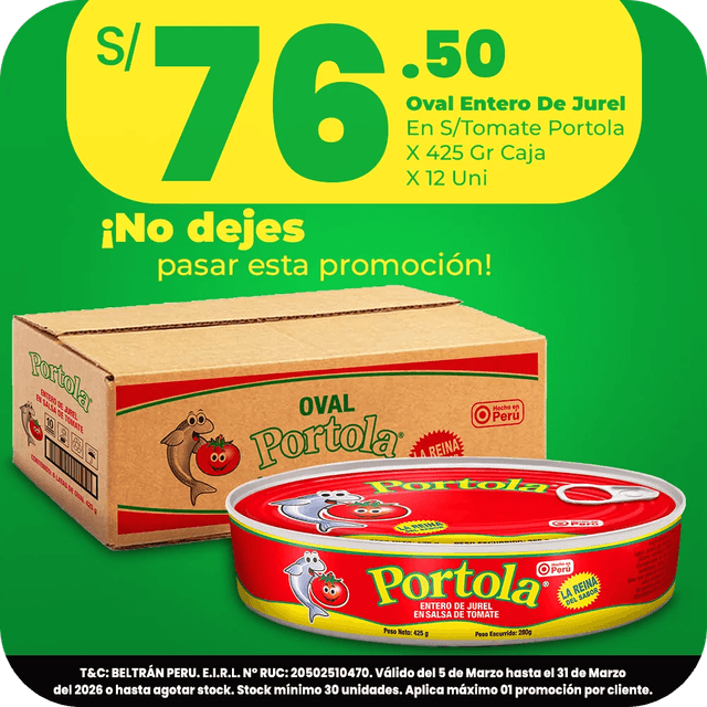 Entero De Jurel Medio Tall En S/Tomate Portola Caja X 200 Gr X 12 Uni