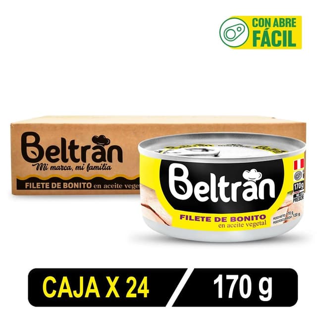 Filete De Bonito Beltrán En Ac. Vegetal 1/2 Lb 170 Gr Caja X 24 Uni