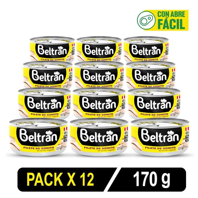Filete De Bonito Beltrán En Ac. Vegetal 1/2 Lb 170 Gr Caja X 12 Uni