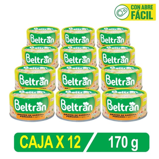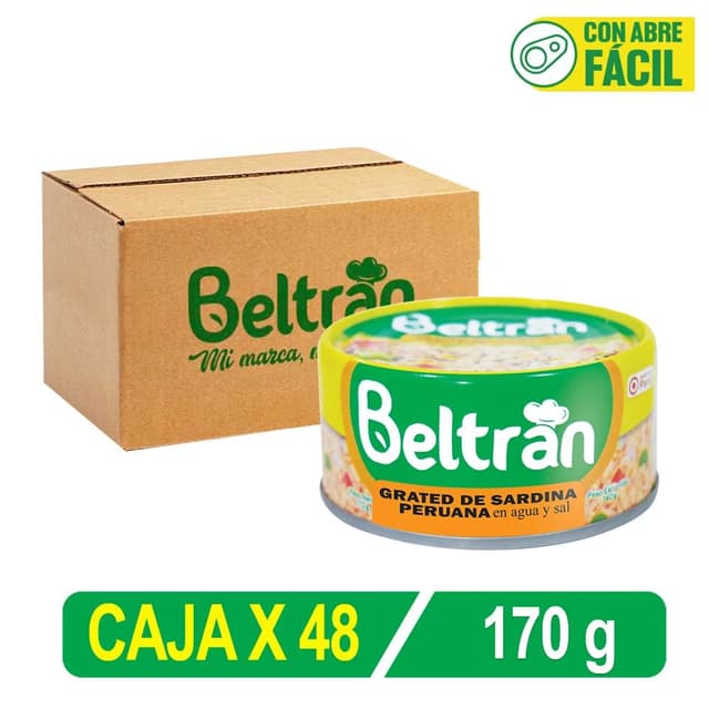 Grated De Sardina Peruana Beltrán En Agua Y Sal 1/2 Lb 170 Gr Caja . X 48 Uni