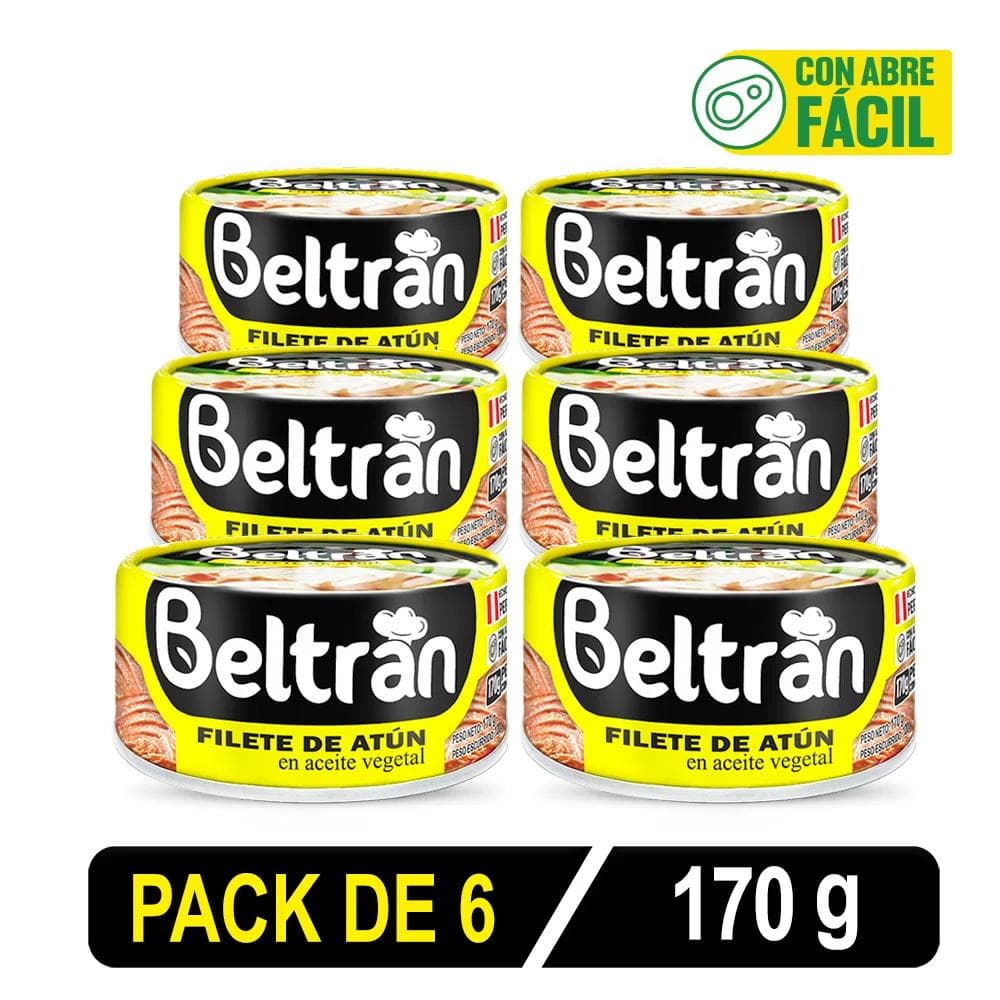 Filete De Atún Beltrán En Ac. Vegetal 1/2 Lb 170 Gr Caja X 6 Uni