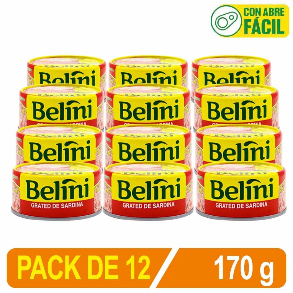 Grated De Sardina Peruana Belini En Agua Y Sal 1/2 Lb 170 Gr Caja X 12 Uni